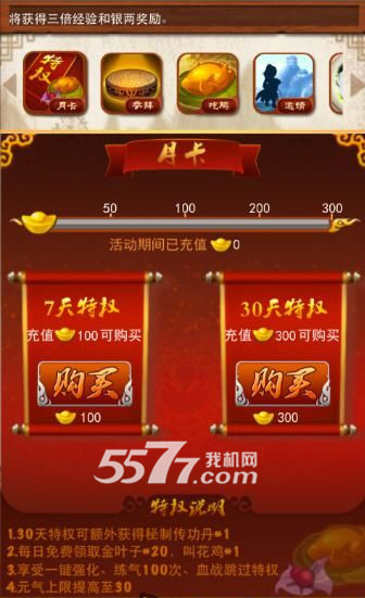 充值300元宝可以购买30天特权