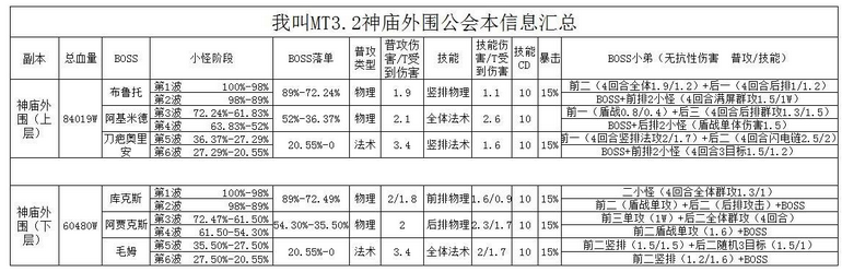 各位我加mt的小伙伴们,神庙外围副本开展也有一段时间了,不知道大家对这个副本了解多少,今天小编特意给大家奉上神庙外围副本各个阶段的具体小怪阵容和属性,希望可以帮助大家更进一步的了解个副本的打法,希望大家喜欢!