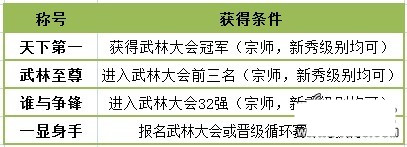 1、武林大会称号: