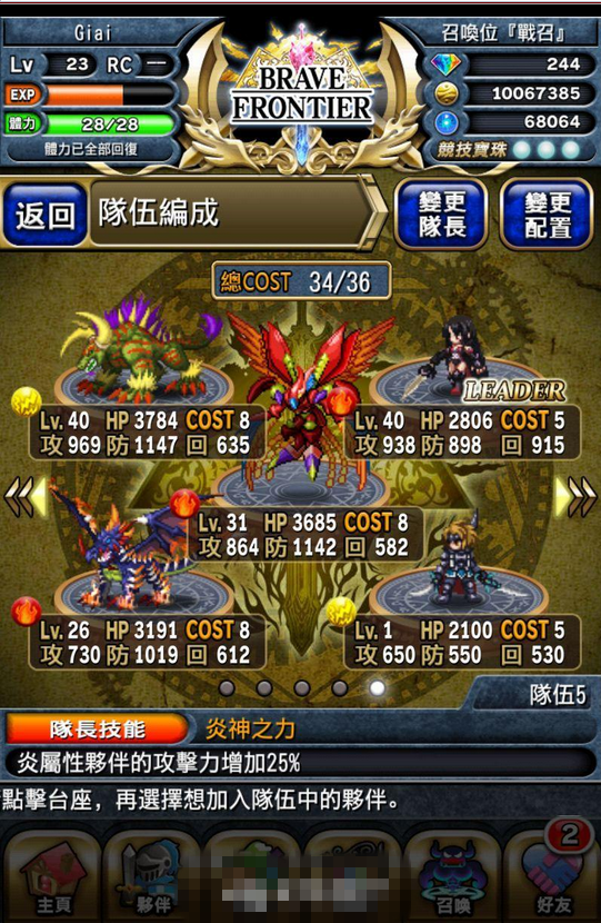 | 队长技能 | 【炎创神之力】炎属性伙伴的攻击力增加50% | ||||