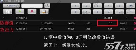 玩家你通过以上教程,修改游戏中英雄的攻击力与防御值吧!