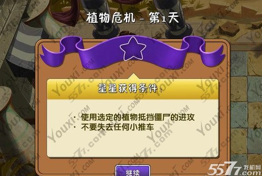 这一关中我们只需要成功抵挡僵尸的入侵即可。