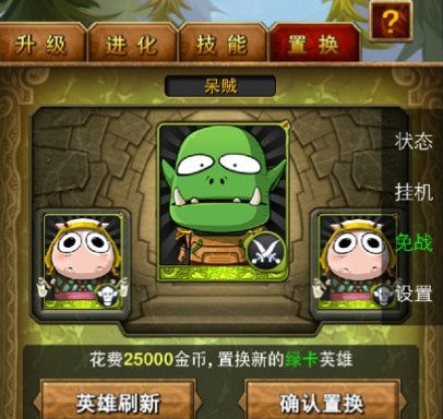 两张材料绿卡置换一张新的绿卡,绿卡置换每次消耗25000金币,白卡置换每次消耗15000金币。