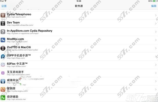 1、首先我们进入IOS设备的cydia,然后点击【软件源】—【编辑】—【添加】,之后添加叉叉辅助的网址,也就是apt.xxzhushou.com/