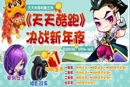 参加天天酷跑决战新年夜活动即有机会获得暗影战车一辆。