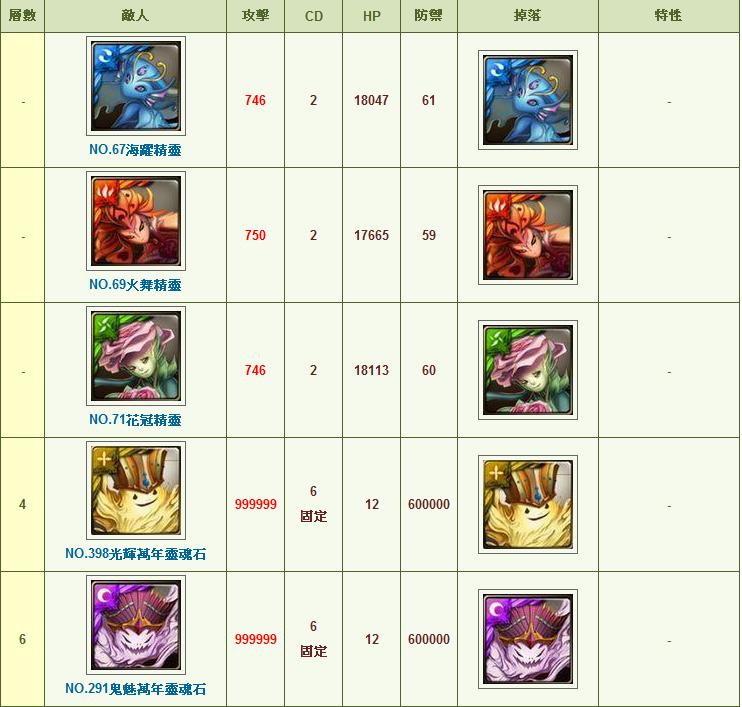 2、第4、7关固定出现万年灵魂石,血量只有12滴,防御有60万,但攻击力却是10万,所以每回合至少要攻击2下,才不会被打死,或者有破除防御的技能也能直接施放。