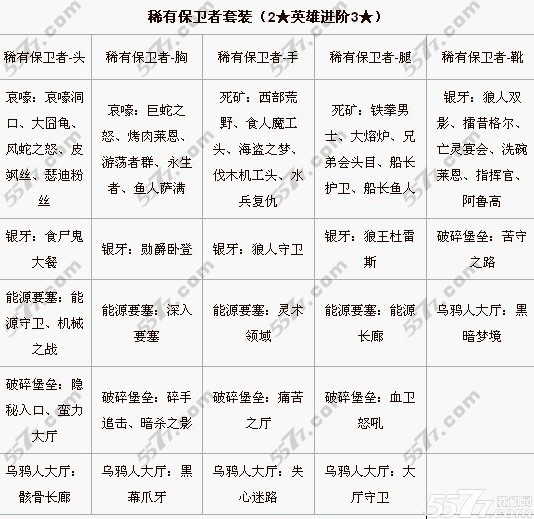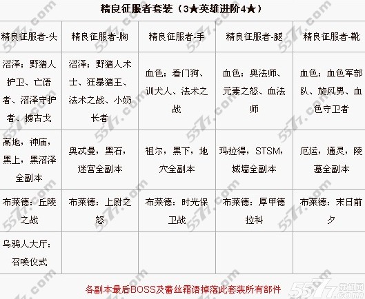 以上整理本表格包含稀有保卫者套装、精良征服者套装、稀有武器、精良书籍、史诗首饰的所有副本出处,具体哪个BOSS出,供大家方便查看。