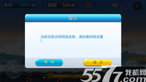 3、关掉网络后返回游戏,点击再来一局,出现下图所示界面,然后点击取消,游戏会返回主界面,然后退出游戏,如下两图所示;