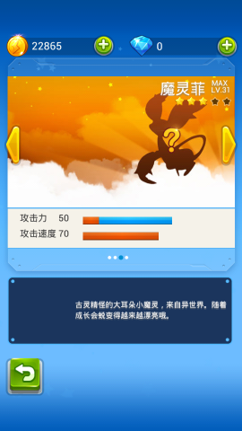 在游戏中,魔灵菲是一只异世界的魔灵,最高等级31级,是新版的一只3星宠物。