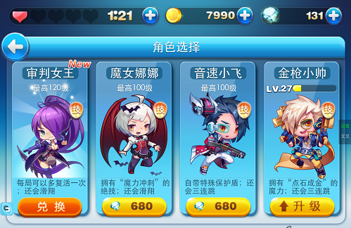 天天酷跑角色:魔女娜娜=音速小飞>审判女王>金枪小帅