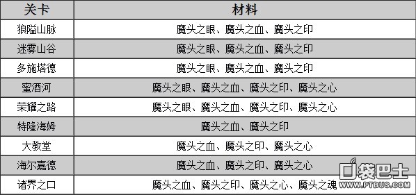 以下是永恒战士3魔头材料出处大全: