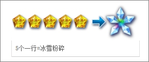 也许你的技巧会更加娴熟,可以让5个同色的冰晶匹配成”+“、”L“或者”T“的形状,那么在消除后还会获得另一个特殊的冰晶——冰霜新星。激活冰霜新星会对其周围3X3区域内的冰晶进行两次消除,也就是可以消除最多16个冰晶!