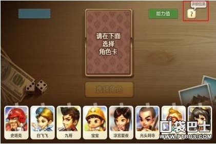 总共有8个角色卡可以选择,对应的能力值有所不同,点击右上角的问号可以查看详细信息说明,并可查看骰子能力值。