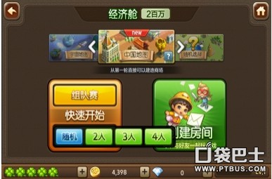 游戏主页左上角可以邀请好友加入《天天富翁》;右上角可以看到好友排行,并且可以发送四叶草给好友;左下角分别是角色卡、骰子、幸运道具和商店,第一次进入有详细的教程说明。