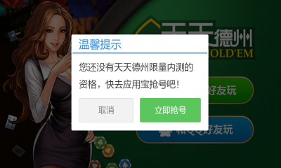 天天德州的玩家们,你们知道内测号怎么获得吗?按照从前的经验,应该是只要能下载游戏就能获得内测号!但是这次似乎有点不一样!赶紧来看看吧!
