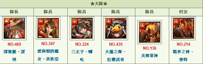 诅咒之路是纯木属性怪的关卡,第20层BOSS双枪更是拥有火属性盾及变态的27890点攻击,因此除了火队外的组合想要通关相当地困难,队长使用火狂魔能提供3倍火属攻击同时也能轻松打通12层,好友使用赛特可以提升火属对木属性怪3倍的攻击力还能弥补火狂的低血量及最后关卡的爆发。
