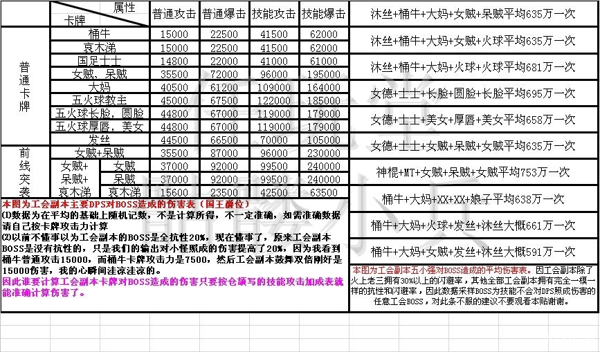 因工会副本除了火上老三拥有30%以上的闪避率,其他全部工会副本拥有完全一模一样的抗性和闪避率,因此数据采样BOSS为技能不会对DPS照成伤害的任意工会BOSS,对此条不服的建议不要观看本贴谢谢。