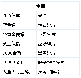 内容:打开后可100%获得一个小小部位5碎片,以及两个紫羊,两个女妖;