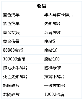 内容:打开后可100%获得一个剑圣部位4碎片,以及两个紫羊,两个女妖;