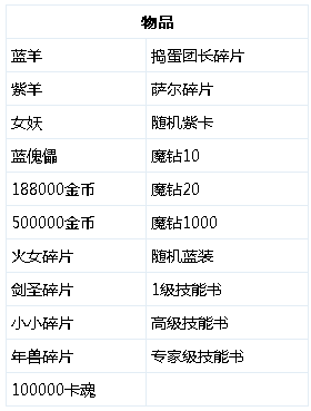 连续登陆7天:紫卡随机包(掉落概率同首充的紫卡随机包,不加新英雄)