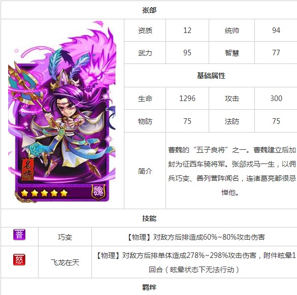 看完了属性,明白了张郃是一个非常理想的后排杀手,其爆发非常的了得。接下来给大家介绍的是张郃和大家搭配使用的时候会有什么样的效果!
