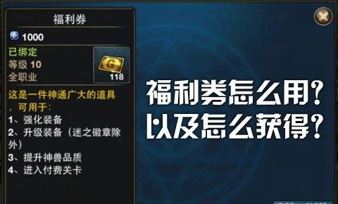这个福利券这个东西主要就是用来升级装备的,如果你的福利券够多,那么你就可以不使用金币来升级你的装备,这样又能省下一大笔钱哦!