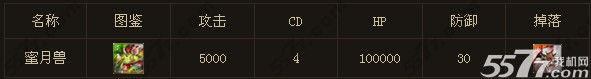 蜜月兽攻击颇高,5000的攻击对一些队伍还是有压力的,而且拥有10万的血量,确实血厚但是好的是4cd下,还算给了我们足够的时间回复,但是出现两只蜜月兽的情况下,没有1W+的血量会被秒掉,所以打蜜月兽就两种办法,一种是暴力碾压,不过看起来大部分是不太可能的,所以我们选择一些稳妥的方法,就是磨,我们需要拥有木属性减伤技能的队长