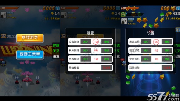 5、返回游戏后进行游戏,我机网小编提醒玩家注意,当碰到每一关BOSS时都要暂停游戏,并将攻击倍数还原成1倍,杀死BOSS后再改成5倍;