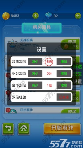 3、之后修改叉叉中的攻击加倍一栏,将其改为5倍,其他不变,如下图;