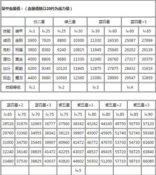 装甲中几种系列的相关数值由低到高排序:金刚<神圣<黄金<聚能<魔龙。所以大家一眼就知道了那种装甲是游戏里最好的了,但是最好的装备往往都是游戏里最贵的道具,所以一些其他平民玩家可以根据上图的数据来对自己的装备有个更好的认识,追求装备的攻击力时,别忘记血量这个属性。希望以上资料对大家能有所帮助。