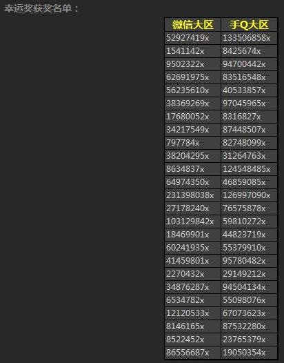各位玩家们,快点来看看有没有你的名字在列吧!这期的奖励肯定会很丰富的哦!不过不得不说,这次中奖的人还真的是挺多的呢!虽然相对玩家基数来说,这点人简直不能提,但是这恐怕是腾讯头一次公布这么长的中奖名单吧!最后!祝大家游戏愉快啦!
