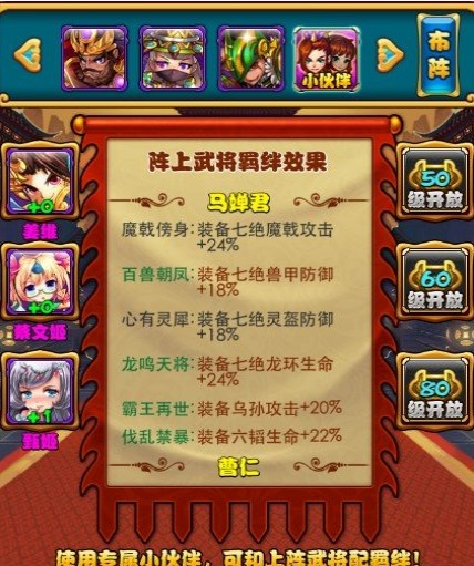 以上就是小编对放开那三国小伙伴有什么作用的介绍,小伙伴你们现在知道了,在放开那三国小伙伴有什么重要作用了吧!小伙伴的位置是方便玩家增加更多的武将的羁绊关系,让武将更加的厉害!有了小伙伴的加入,必定更加的强力!