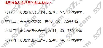 先要说明的是四星进阶五星所需要的基本材料,有以上四种,掉落关卡已经列出,大家可以去刷啦~!