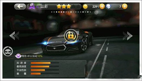 天天飞车猎影它的获得条件暂时不知道,估计难不到众位忠实玩家,赛车星级小编我只能暂时定在三星,升级价格也还无从得知,但是百分之十的积分加成还是值得拥有的。以上只是小编的个人推断,真实数据还是以正式推出为准。