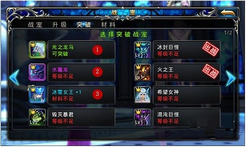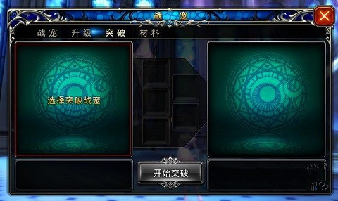 点击选择突破战宠,在战宠列表中寻找需要突破的战宠,点击名称进行突破