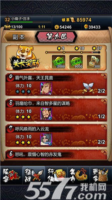 玩家进入到英雄级别的副本景阳冈和参北斗中尽量三星,星级高玩家可以获得铜币、声望、英雄卡牌等奖励,运气好会有很多银票奖励。英雄副本每天的通关机会是5次,所以玩家想要获得更多的银票就去挑战吧。