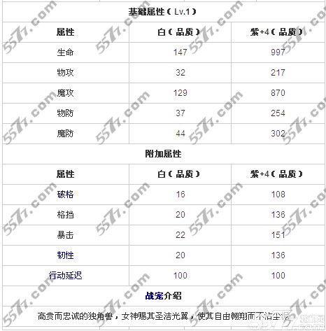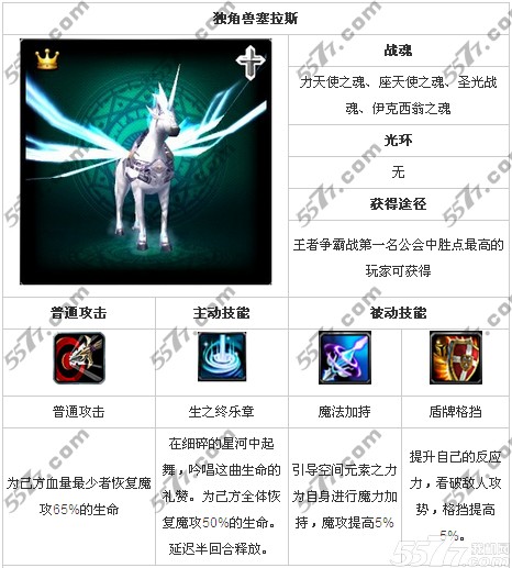 神之刃独角兽属性技能: