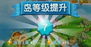 2、岛的等级如下图一样提升,也会对玩家进行体力的奖励,而且这个体力会进行累计,不会因为到达上限就没用了!