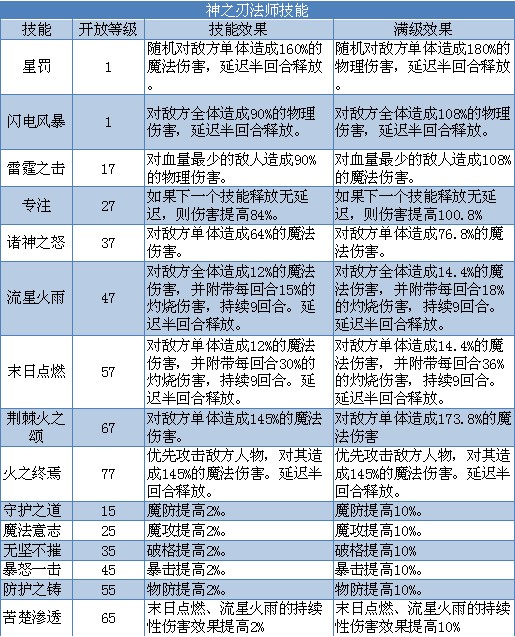 神之刃法师技能: