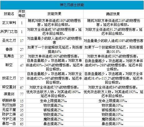 神之刃战士技能: