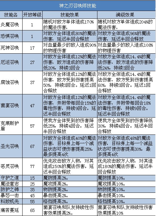 神之刃召唤师技能: