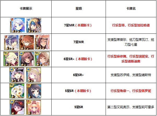 1.4月1日15:00-4月16日15:00,扭蛋机中新增7星MR行乐型菲、6星SR+行乐型麻依舞、6星SR+行乐型琪妮安、6星SR行乐型德斯迪奥、5星SR行乐型角宿一、5星SR行乐型佩罗妮,4月16日15:00后将从扭蛋机中移除~