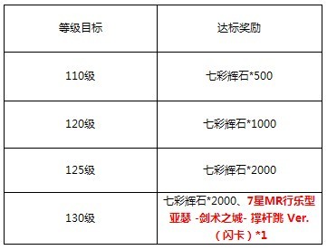 各位亚瑟角色等级上限开放至130级!在活动结束前达到指定等级目标,即可获得达标奖励!