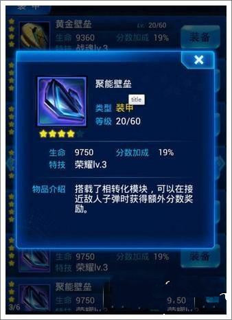 个人点评:作为壁垒装备,这件装备的技能还是不错的,比较实用,最高25%几率减少50%伤害,不过有一点不是很好,因为这个件装备是几率触发减伤,在雷霆战机的世界里,分分钟都可能被秒掉,减伤的装备其实意义不大,越是往后面BOSS的伤害越高,减伤没什么必要。