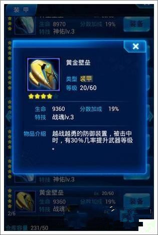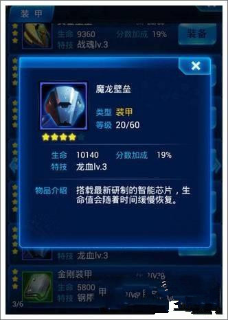 个人点评:魔龙壁垒算是不错的护甲装备了,首先可以回血,只不过回复速度稍微慢了一点,不过我机小编可以给一个建议,如果你有守护型僚机,在加上魔龙壁垒,你在游戏中生存保证可以大大的提高。
