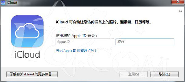 1、在你的电脑上下载并安装苹果产品管理软件iCloud(下载地址:http://www.apple.com/icloud/setup/pc.html)