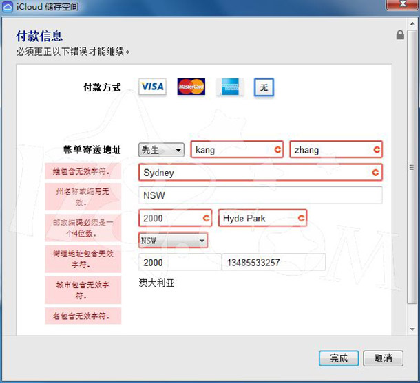 6、在付款方式一栏选择(无),将个人信息及地址都填好后点完成即可