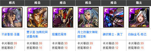 队员:解放木妹(必备)+暗游(必备)+其他可加速磨的主动技能卡(如:吕布、巨蝎、机龙、防龙、梅格)后补队员:光暗异界龙、木游、木妹、暗妹、西瓜、火游、小丑等...