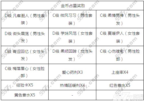 钻石占星玩家可以花费3000金币/1次,13000金币/5次,25000钻石/10次,金币占星有机会获得的是C级装扮,而且是有时间限制的哟~当然还是有机会获得一些道具的哟。