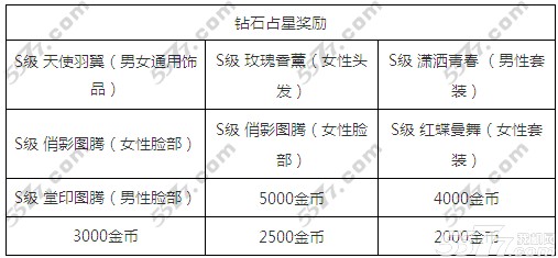 钻石占星玩家可以花费30钻石/1次,130钻石/5次,250钻石/10次,钻石占星有机会获得永久的S级装扮哟~还有金币奖励。